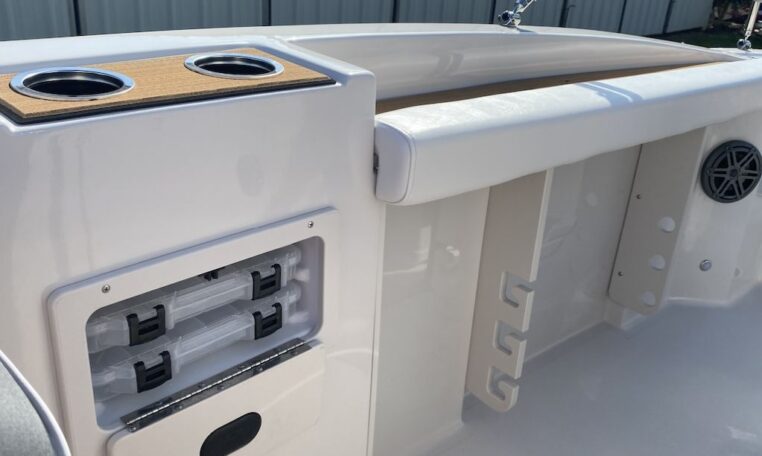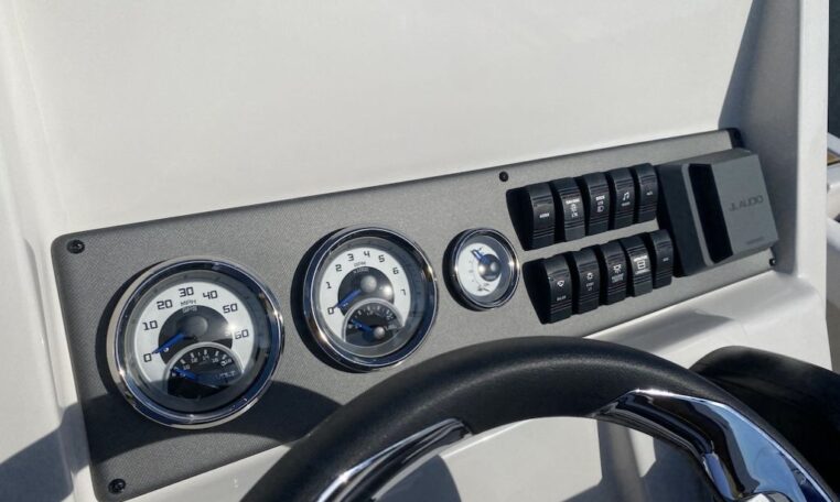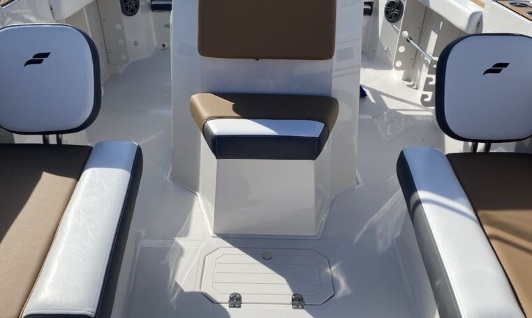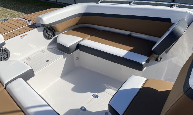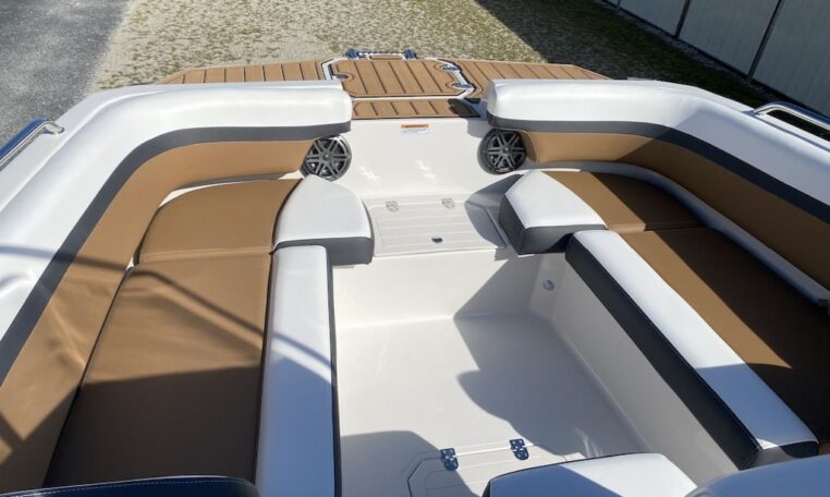 Standard Features include the following: Automatic Bilge Pump, Bow Platform and Boarding Ladder, Bow and Stern SeaDek, Bimini Top and Storage Boot, Guage Package (Speedometer, Tachometer, Fuel, Volt), Head Compartment (NA on 191), Hydraulic Steering, In-Floor Storage, Wet Sounds MC-5 Stereo with Bluetooth, Wet Sounds Speakers, Marine-Grade UV Stable Vinyl Upholstery, Mooring Cleats, Reverse Chine Hull, 24-oz Woven Roving Fiberglass with 6-inch Overlap, Open Rod Storage
