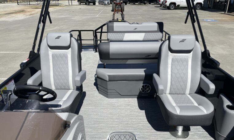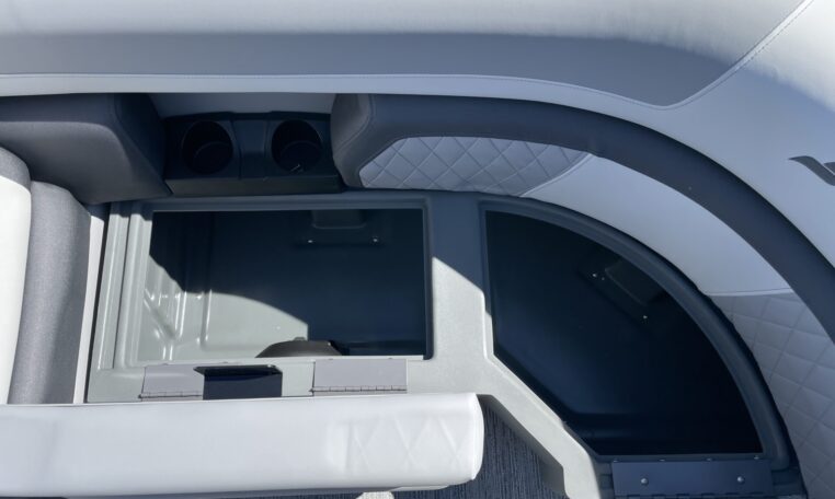 Starcraft’s EXS series puts third-tube performance within the reach of every family. Choose from 25’, 23’ or 21’ models with our exclusive HMX PR25 Performance Package including lifting strakes, a Performance Shield, hydraulic steering and a ski pylon all as standard equipment. Sleek, black powder coated rails and black side trim, docking lights and a low-profile sport console complete with a Gussi Italia Verona tilt steering wheel and low-back Captain’s chairs give EXS a bold look to match its exhilarating performance. There’s even a color-coordinated Bimini top with storage boot, a changing room, a retractable boarding ladder and a Wet Sounds MC-5 Stereo with Bluetooth – all standard.