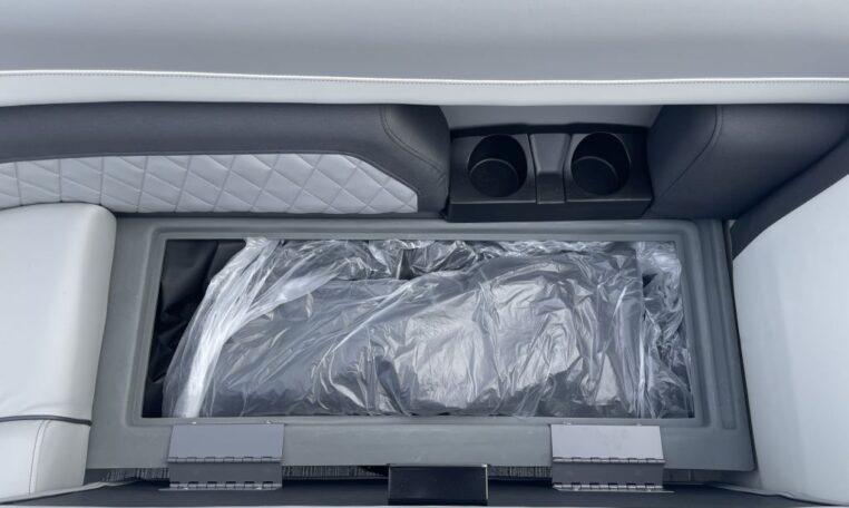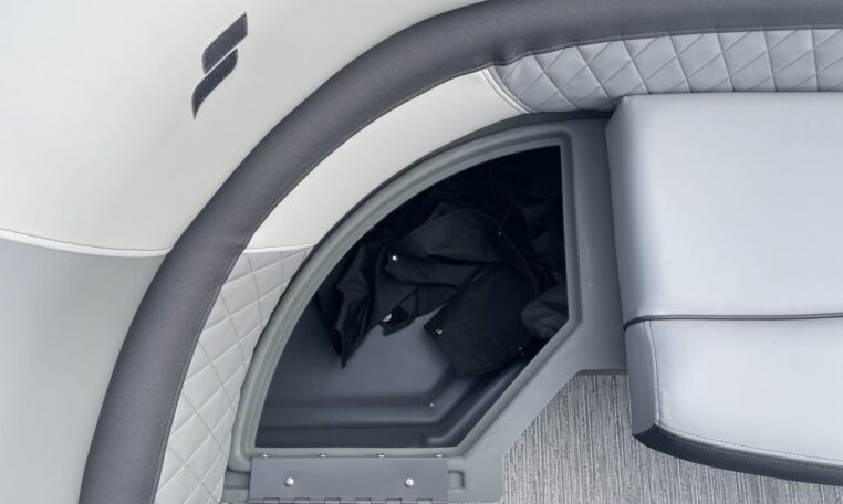 Starcraft’s EXS series puts third-tube performance within the reach of every family. Choose from 25’, 23’ or 21’ models with our exclusive HMX PR25 Performance Package including lifting strakes, a Performance Shield, hydraulic steering and a ski pylon all as standard equipment. Sleek, black powder coated rails and black side trim, docking lights and a low-profile sport console complete with a Gussi Italia Verona tilt steering wheel and low-back Captain’s chairs give EXS a bold look to match its exhilarating performance. There’s even a color-coordinated Bimini top with storage boot, a changing room, a retractable boarding ladder and a Wet Sounds MC-5 Stereo with Bluetooth – all standard.