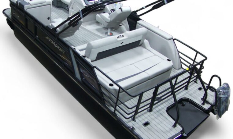 Standard Features include the following: Voltmeter, Speedometer, Courtesy Lights, Docking Lights, Fuel Gauge; Power Canopy, Wet Sounds MC 2 with Bluetooth-USB-Sirius XM Ready, Cupholders, Full Heavy Hat Understructure, Extended Rear Deck, Windscreen, Deck Cleats, Custom Molded Dash, Power Point with Breaker, Black Painted Pontoon Tubes, Gussi Italia Verona Steering Wheel, SeaStar Hydraulic Steering, 25 in Diamter Aluminum Pontoon Tubes, All Welded Aluminum Transom, Marine Grade Plywood Decking, Performace Shield, Rotocast Furniture Bases with Integrated Drains, Changing Room (NA on all models), High Back Helm Seat, Wide Handle Stainless Steel 4 step Ladder, Integrated Ski Tow with Rear Enclosure, Extended Rear Deck