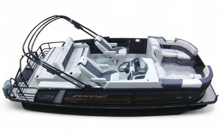 The Starcraft Pontoon SLS Series is an excellent choice for those looking to blend comfort with performance on the water. Featuring the standard HMX Third Tube Performance Package, this pontoon delivers improved stability and agility, ensuring smooth navigation and exhilarating rides. The rear lounges provide generous seating, making it the perfect spot for relaxation and socializing with family and friends. With its stylish design and thoughtful amenities, the SLS Series guarantees that every outing is enjoyable and memorable. Designed for both cruising and watersports, the SLS Series offers a versatile pontoon boat experience for the whole family.