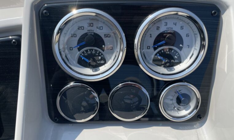 Standard Features include the following: 25inch Diameter Tubes with Lifetime Warranty, Marine-grade Plywood Deck with Lifetime Warranty, All Aluminum Transom with Lifetime Warranty, Black Powder Coated Rails, Deck Trim and Top Frame, Built-in Livewell (Fish Models Only), Change Room (N/A on All Models), Console Storage, Deck Cleats, Docking Lights, Extended Rear Deck, Extruded, Sealed Performance Strakes, Fold-up Deck Cleats, Full Heavy Hat Understructure, Gauge, Package (Speedometer, Tachometer, Fuel Gauge, Volt Meter), SPX PR25 Performance Package, Low-back Helm , Chair with Recline, Swivel, Slide and Armrests, Playpen Cover, Power Canopy, Roto cast Furniture Bases with Integrated Drains, SeaStar Hydraulic Steering, Ski Tow, Table with Cupholders, USB Charging Port, Wet Sound MC-5 Stereo, Wet Sounds Speakers, Wide-handle Stainless Steel 4-step Telescoping Ladder, Windscreen, Woven Vinyl Sea Weave Flooring